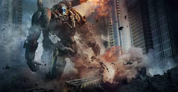 《环太平洋》最成功的就是把巨型机甲战士与怪兽肉搏这个概念真正展现在了银幕上,将日系《EVA》、《攻壳机动队》以及《哥斯拉》、《金刚》等日本和美国怪兽片结合起来,重新在大银幕上复现了极致的巨大崇拜和钢铁崇拜情结合。其主题曲气势恢宏,震憾人心。