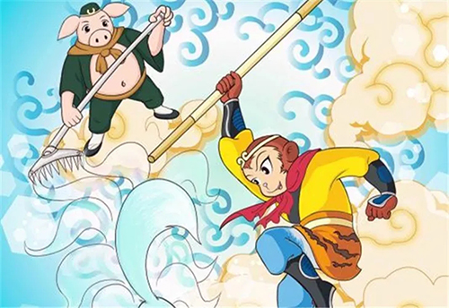 唐僧、孙悟空、猪八戒、沙和尚师徒四人去西天取经,途经荒郊野岭,他们又累又渴又饿,就在一座破庙前休息。唐僧派孙悟空去化些斋饭,八戒也非要跟着一起去。
