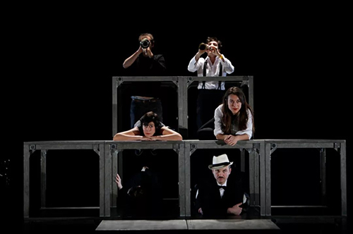 一个事件庞杂的故事以载歌载舞的方式被勾勒出来,用拼接式的表演、可想象的空间、灵活的布景 --舞台上只有不固定的物件(桌椅等)被演员在表演过程中移动转换,来不停地构建、解构、重建这个变化无穷、日新月异的世界影像。