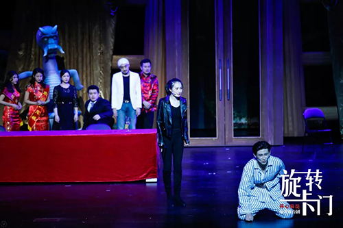 开心麻花作为话剧界的娱乐标杆,不论是台词、服装、舞美都保持极高的流行水准。《旋转卡门》剧中,淘宝官方客服答复,以及阴差阳错出现的古惑仔片段,都引起了剧中的一段小高潮;演员服装同样亮点不断,男主角的豹纹睡衣、女主角神似童佳倩的清纯装扮、拜金女的皮草外套和过膝靴搭配,都映射了当今的流行趋势。
