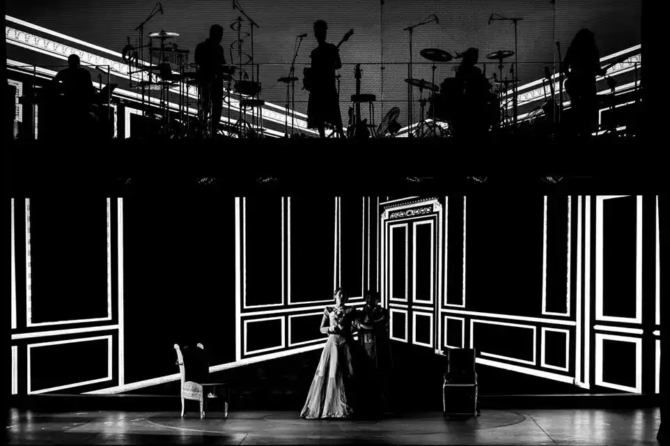3D多媒体震撼全场,现场乐队搬上舞台,最大胆突破的法式摇滚碰撞最经典的“心理小说”,还原一个复古与现代完美融合的“红黑”世界。