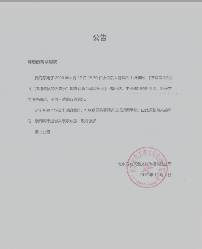 为给各位观众朋友营造一个良好的欣赏2020猫和老鼠的古典乐郑州音乐会的环境,此次音乐会希望观众朋友能提前抵达剧院,提早检票入场,避免迟到。迟到观众请在剧场入口处等待检票,以减少给其他观众朋友带来的不便和影响。请大家遵守秩序,注意维护场内环境及氛围,入场前请将手机关闭或调至静音状态。感谢您的支持。