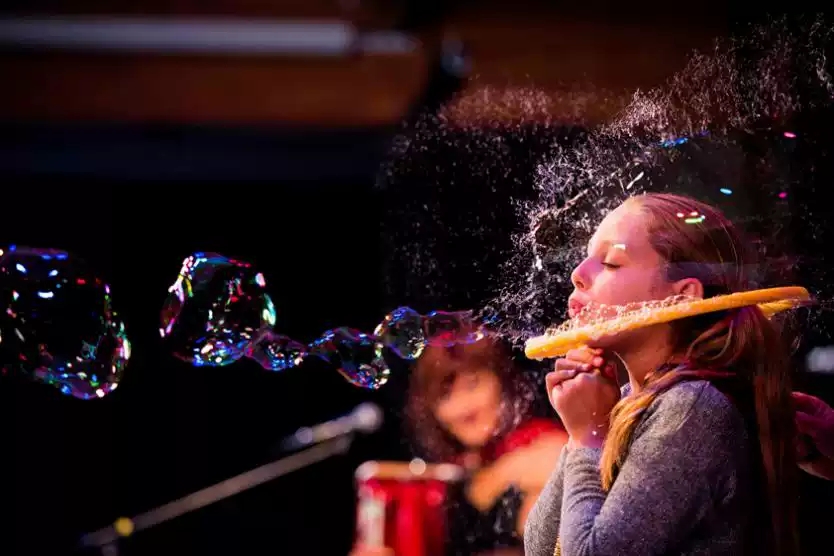 除了探索气泡的动态,该节目结合了现场音乐,喜剧元素,巧妙的场景和灯光设置。这是一个科学实验室,魔术现场,梦幻的泡泡的世界,零距离接触体验现场。