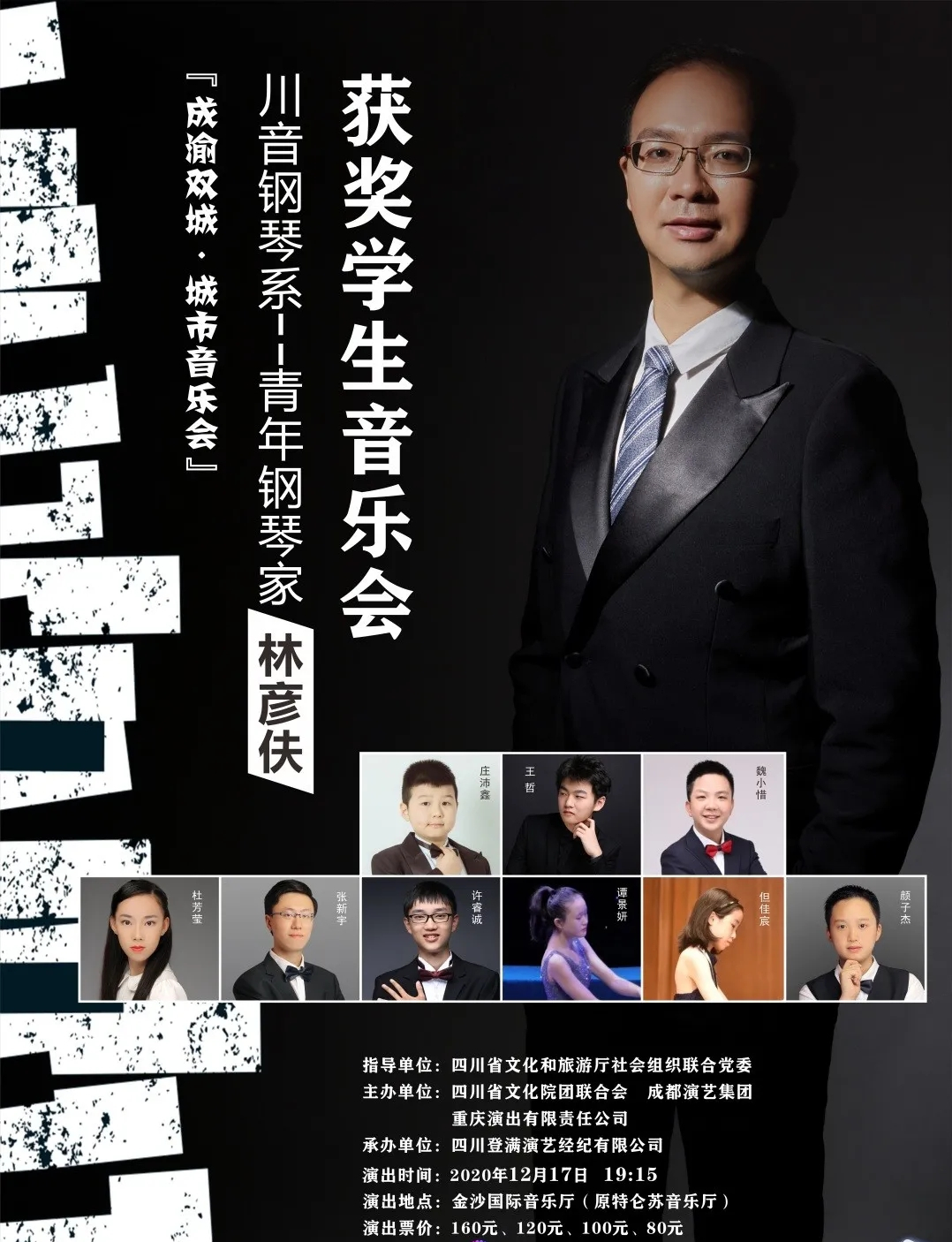 林彦伕:钢琴家、四川音乐学院钢琴系主科教师、钢琴系第三教研组副组长。活跃于舞台,曾在北京、上海、浙江、四川、重庆、贵州等地举办独奏音乐会,参演上海国际艺术节、上海音乐学院海顿室内乐艺术周等大型演出活动,受邀为上海教育出版社录制CD。其演奏受到多位著名演奏家的赞扬,钢琴大师傅聪(Fou Ts'ong )先生称"有天生的敏感",美籍钢琴家陈宏宽(Hung-kuan Chen)评价为"不错的思考能力",法国钢琴家让-皮埃尔· 阿蒙奥德(Jean-Pierre Armengaud)称其"有较敏锐的洞察力"。