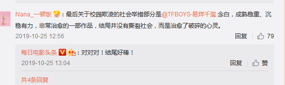 其实,易烊千玺已经不再是一个流量明星了,2019年10月25日,易烊千玺主演的电影《少年的你》在国内各大院线上映,斩下15.58亿票房,该片获得第39届香港电影金像奖最佳影片、最佳编剧、最佳女主角、最佳导演奖等8项奖项,并入围第69届柏林国际电影节新生代单元。并且近期,该片还即将在韩国上映。