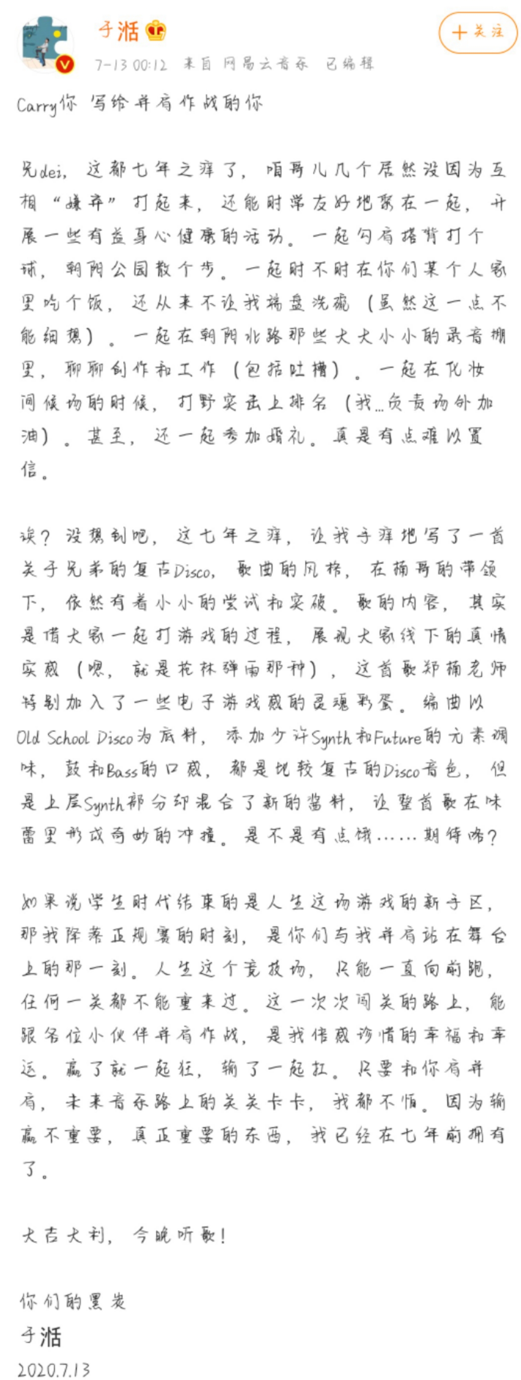 正如于湉在微博中说的那样:“赢了就一起狂,输了一起扛。只要和你肩并肩,未来音乐路上的关关卡卡,我都不怕。因为输赢不重要,真正重要的东西,我已经在七年前拥有了。”