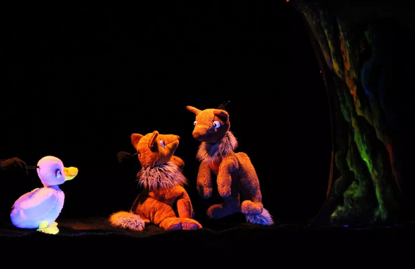 这部剧在舞台上还原出绘本中的童话世界,采用布偶剧的形式,制作出憨态可掬的小鸭子、温柔的狐狸等形象,让每一位小观众都能体会到童话世界的美好。