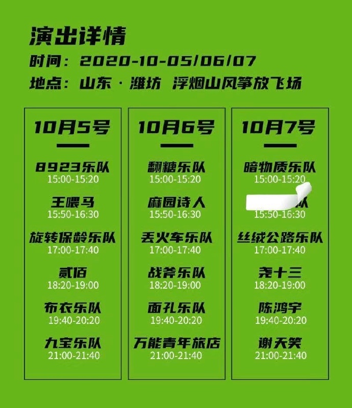 在青柠艋音乐节的演出阵容图上,10月7日有一个名字被打上了马赛,看起来像是乐队的名字,究竟会是谁呢?让我们拭目以待!