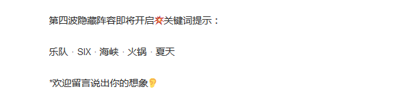 除了公布第三波阵容,晓峰音乐公社还放出了第四波隐藏阵容的关键词提示:
