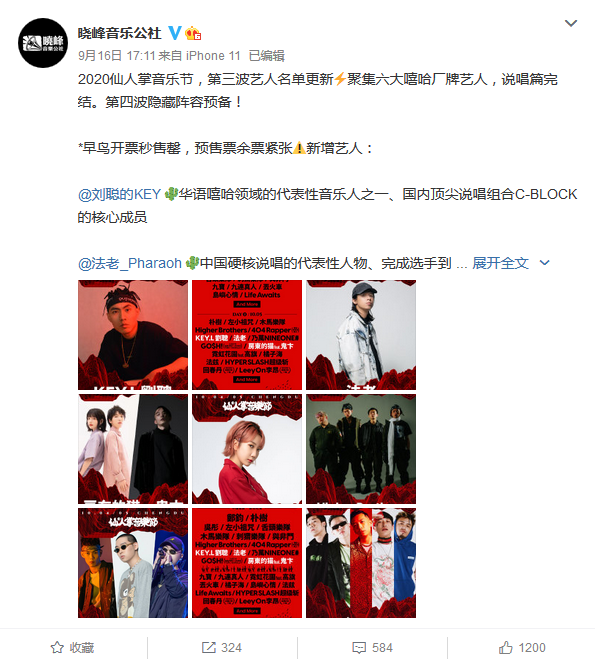 在9月16日,晓峰音乐公社已经公布了仙人掌音乐节的第三波艺人名单。