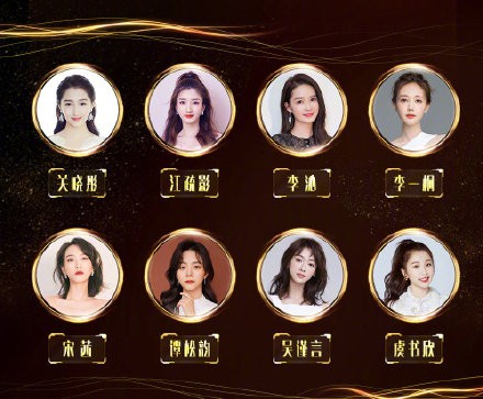 这一届金鹰女神的8位候选人为:关晓彤、江疏影、李沁、李一桐、宋茜、谭松韵、吴谨言、虞书欣。