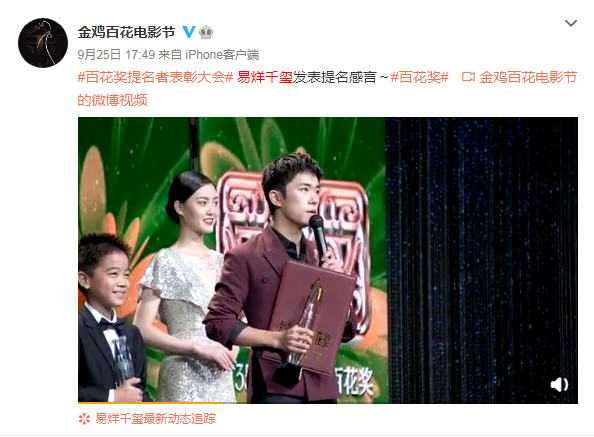 近日,金鸡百花奖电影节在郑州开幕,早前已经知道易烊千玺将会带着电影作品《少年的你》,出席金鸡百花奖的颁奖典礼,心里还是期待了一下的。