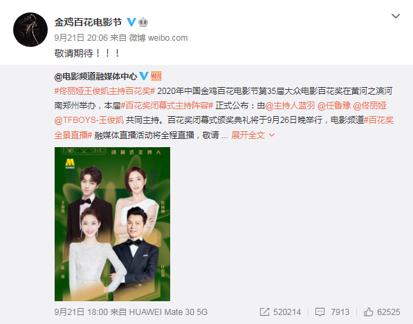 随后,金鸡百花奖官方又发布了王俊凯将担任百花奖闭幕式主持人的消息,让粉丝们又燃起了三小只同台的希望。