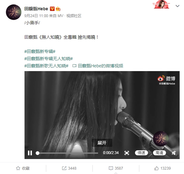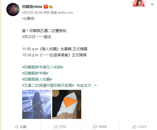 田馥甄在微博的发文引起热议,难道Hebe怀孕了?