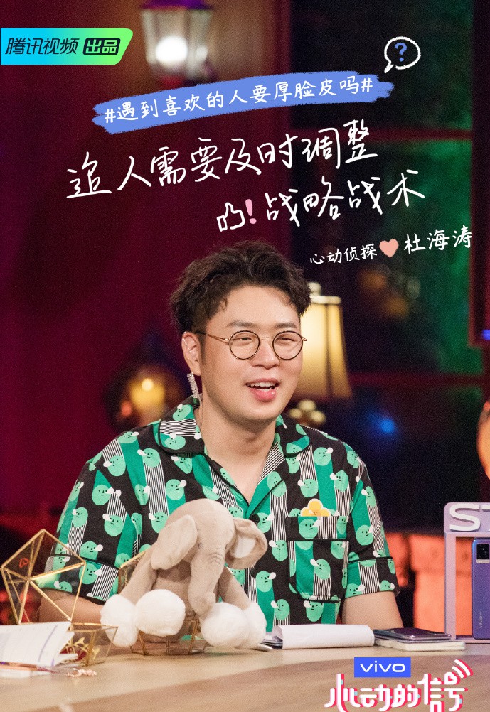这一期,阿星由于约会的失误,也遭到了恋爱的瓶颈期,节目中,他约了好朋友谈论恋爱行为,两个人还交流了“恋爱篮球哲学”,朋友劝阿星,追女生可以脸皮厚一点,还说“脸皮厚,吃的够”。