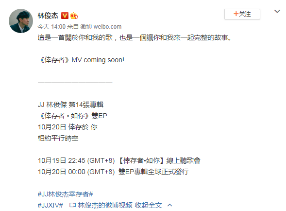 经历了三年的漫长等待和无数歌迷的翘首以盼,林俊杰新专辑《幸存者·如你》将在10月20号全球正式发行!